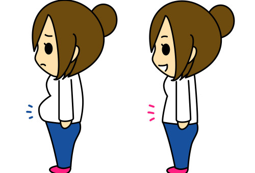 それは,腹圧が低下して,内臓が重力に負けちゃっている状態なんです。