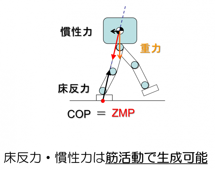 コラムで統合的運動生成概念,本日は「ZMP:ゼロモーメントポイント」について考えていきます。
